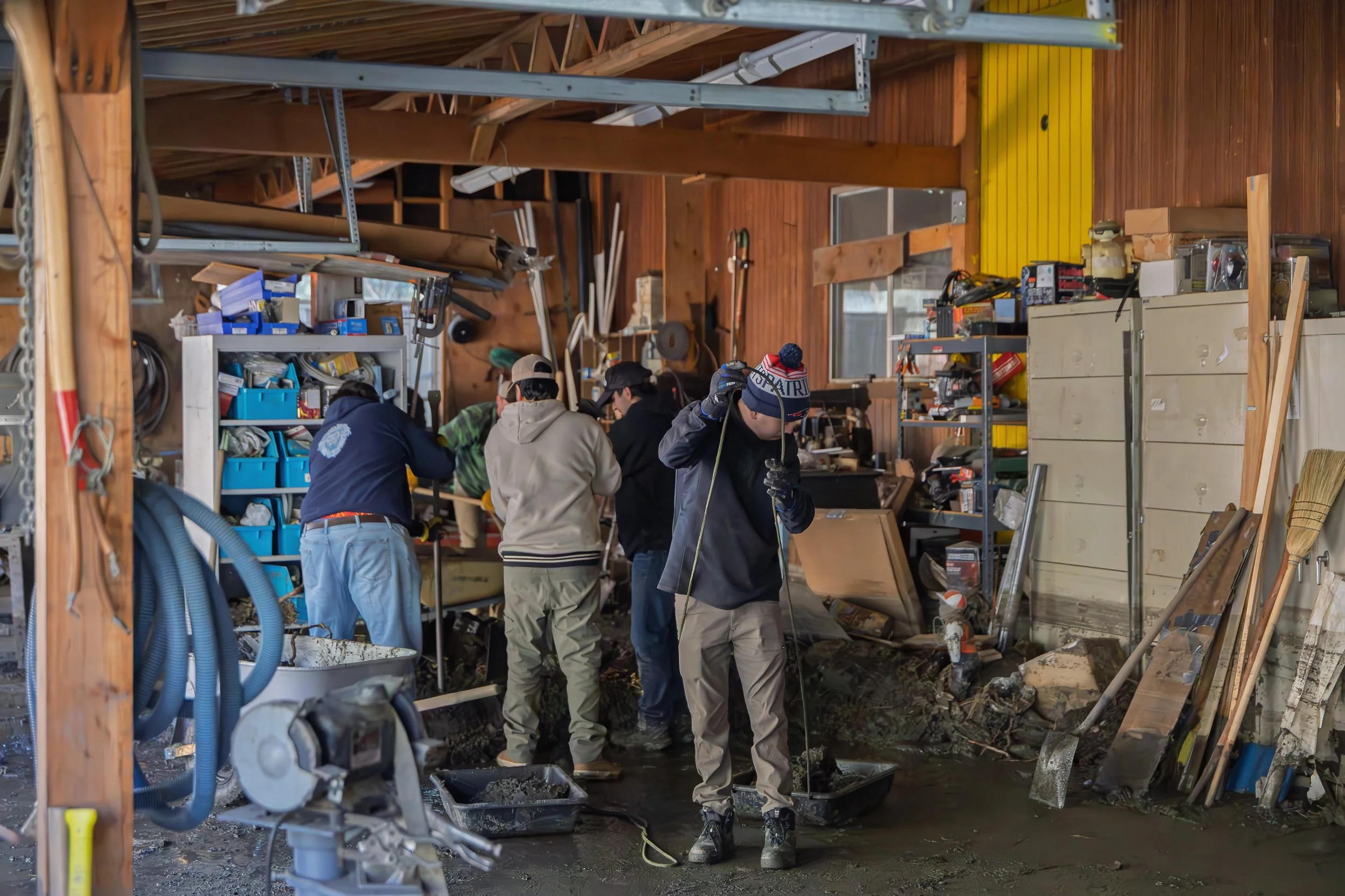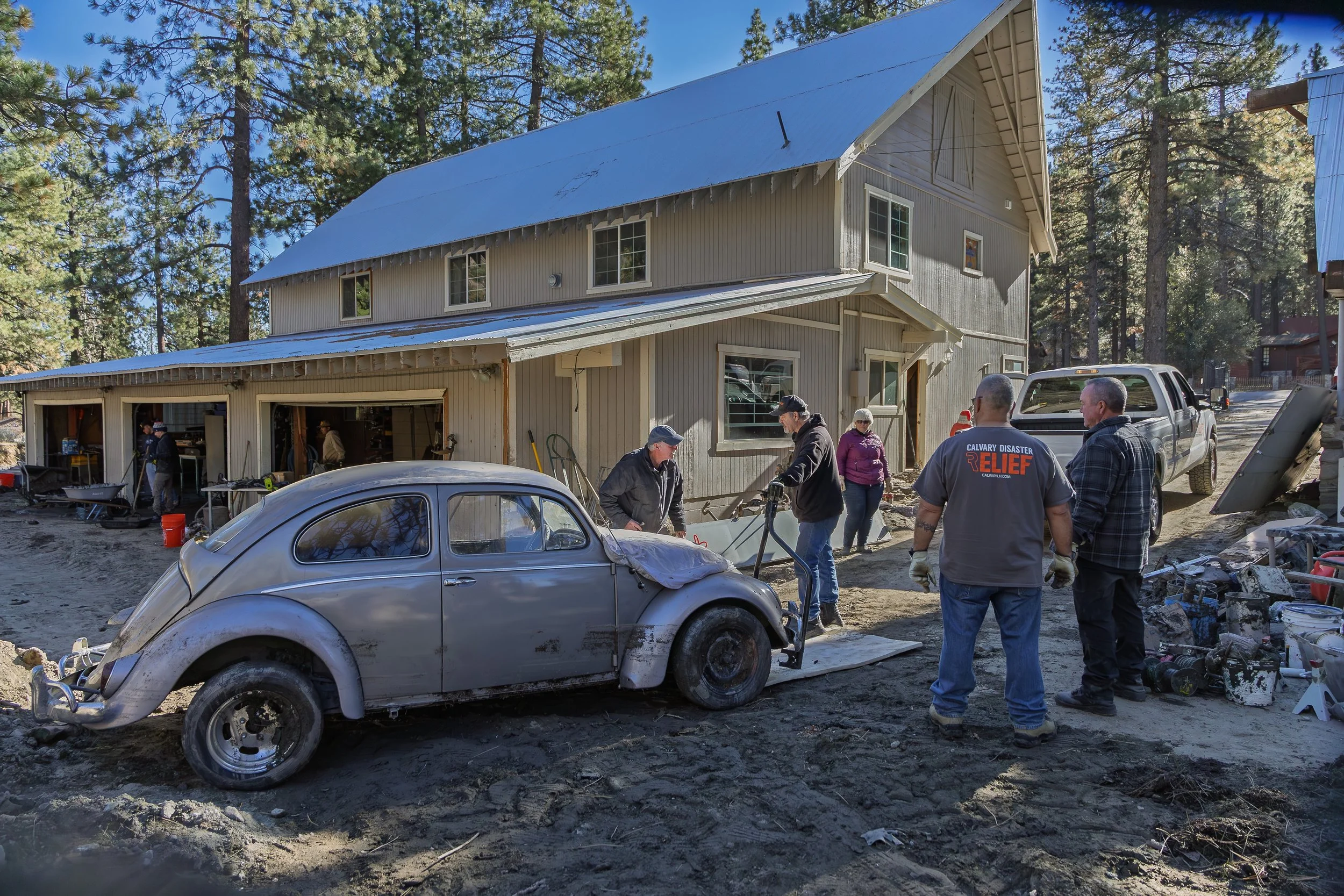 Our CDR team from Calvary Chapel La Habra spent time in the area of Wrightwood, CA, helping people after the recent flooding there. The flood that came through left about 2 feet of mud in an older man's garage that needed to be mucked out, and carpet removed from the residence.